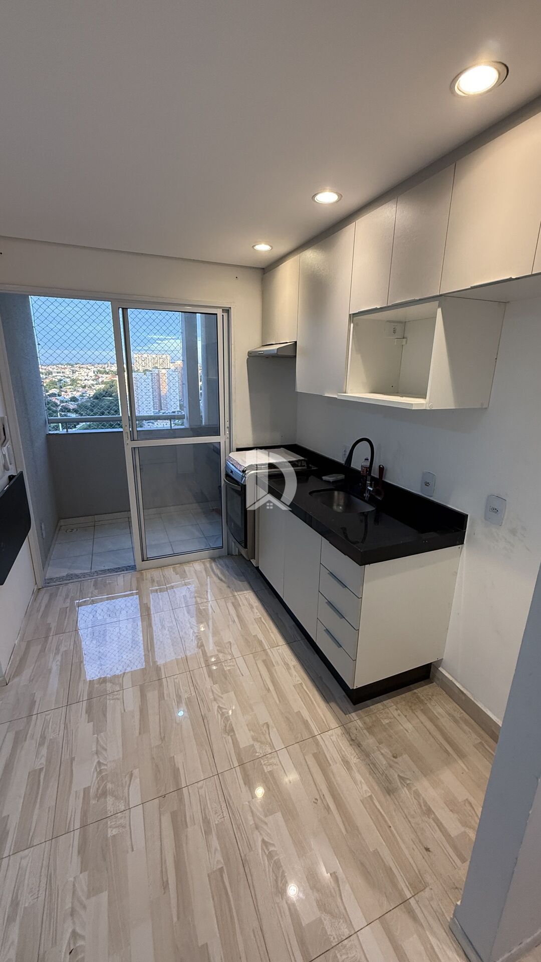 * Cozinha equipada com armário, fogão e coifa